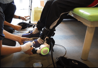 そこで、HAL®による機能訓練体験は、まず足関節の単関節タイプからはじまりました。