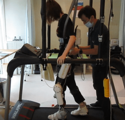 その後、トレッドミルを低速で動かすと、まるで普通に歩いているかのように、力強く両足が一歩一歩前に踏み出されていきます。