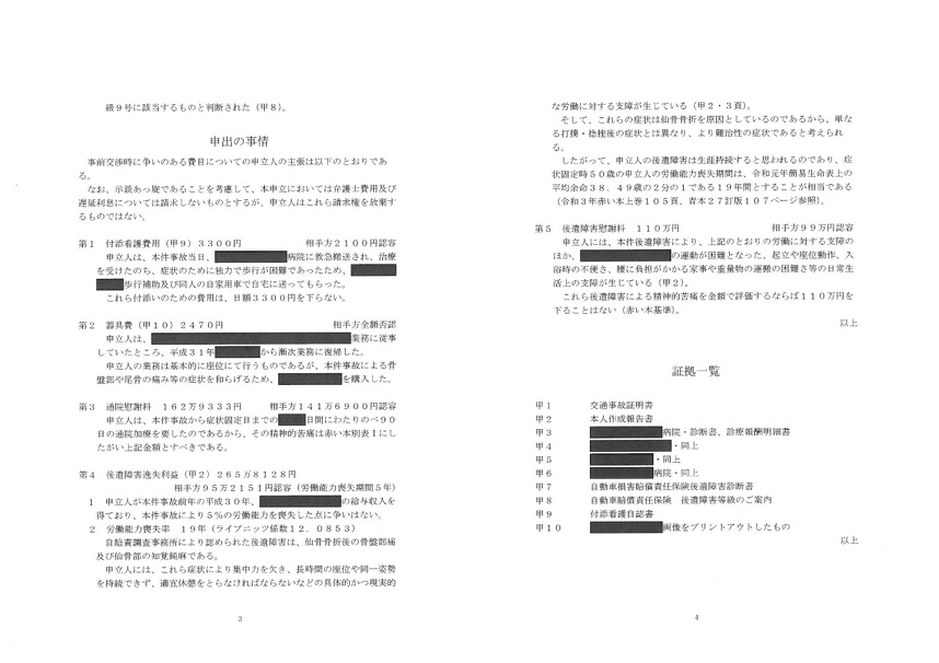 事前交渉では、既払金を除き裁判基準満額の210万円を請求したところ、相手方共済である全労済担当者は休業損害、労働能力喪失期間、慰謝料額をそれぞれ争い160万円程度しか支払わないとのことで折り合いがつかず、令和2年12月3日に愛知県支部に示談あっ旋を申立てしました。