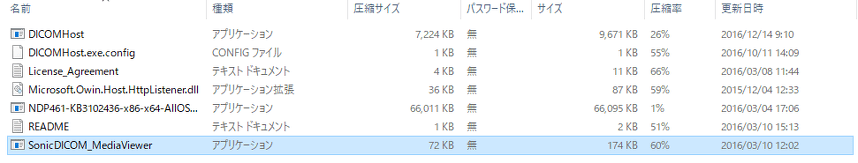 このフォルダをクリックすると、一番下に「SonicDICOM_MediaViewer」というアプリケーションが表示されますので、これがDicom Viewerとなります。
