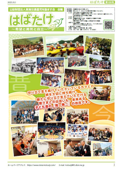 - 東海交通遺児を励ます会の会報「はばたけ」100号記念号が発刊されました。
