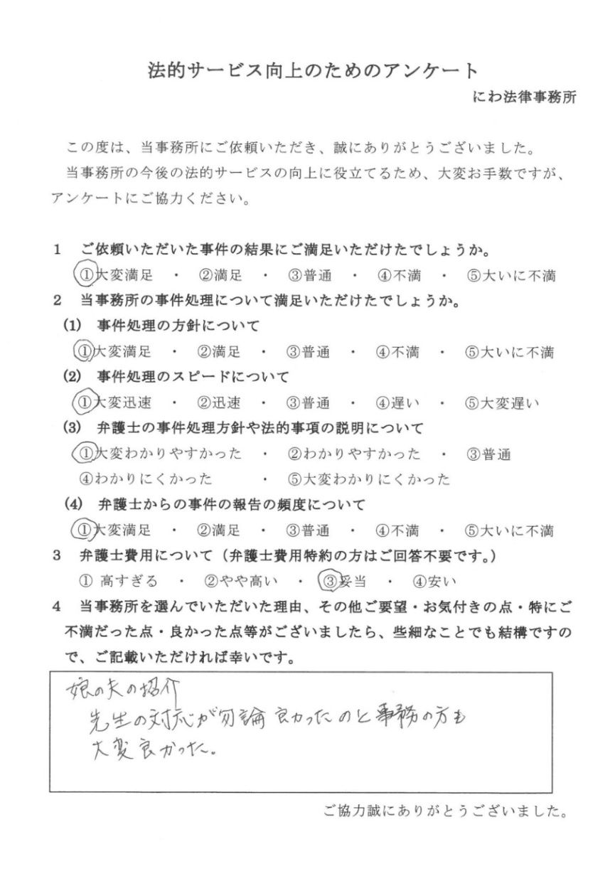 これまでに当事務所へご相談いただいた依頼者様からのご意見やご感想を紹介いたします。