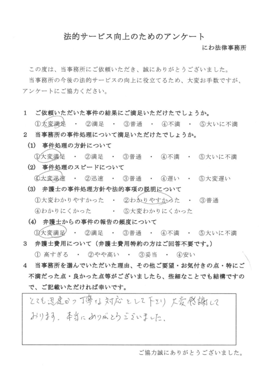 これまでに当事務所へご相談いただいた依頼者様からのご意見やご感想を紹介いたします。