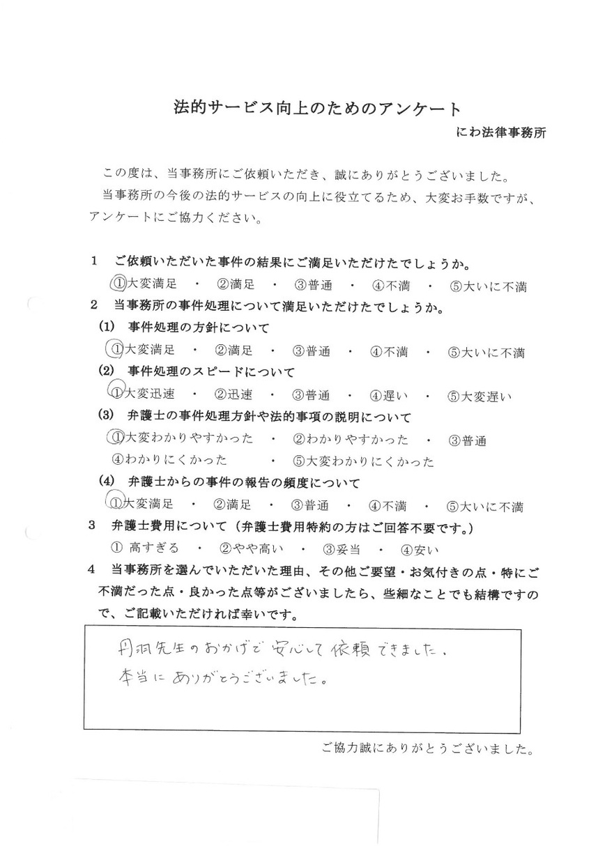 - 先生の人柄に安心感を持て、依頼させて頂きました。