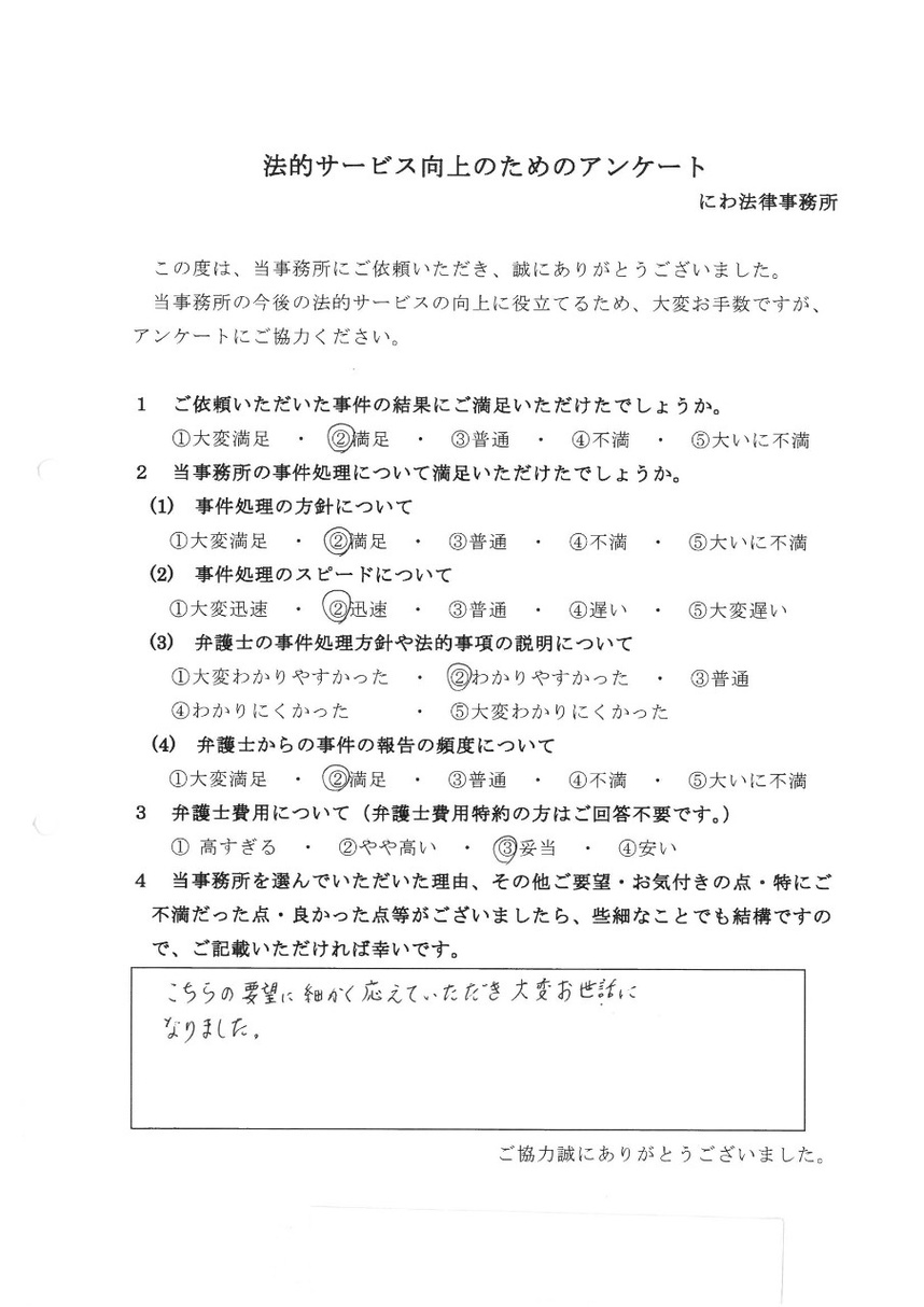 これまでに当事務所へご相談いただいた依頼者様からのご意見やご感想を紹介いたします。