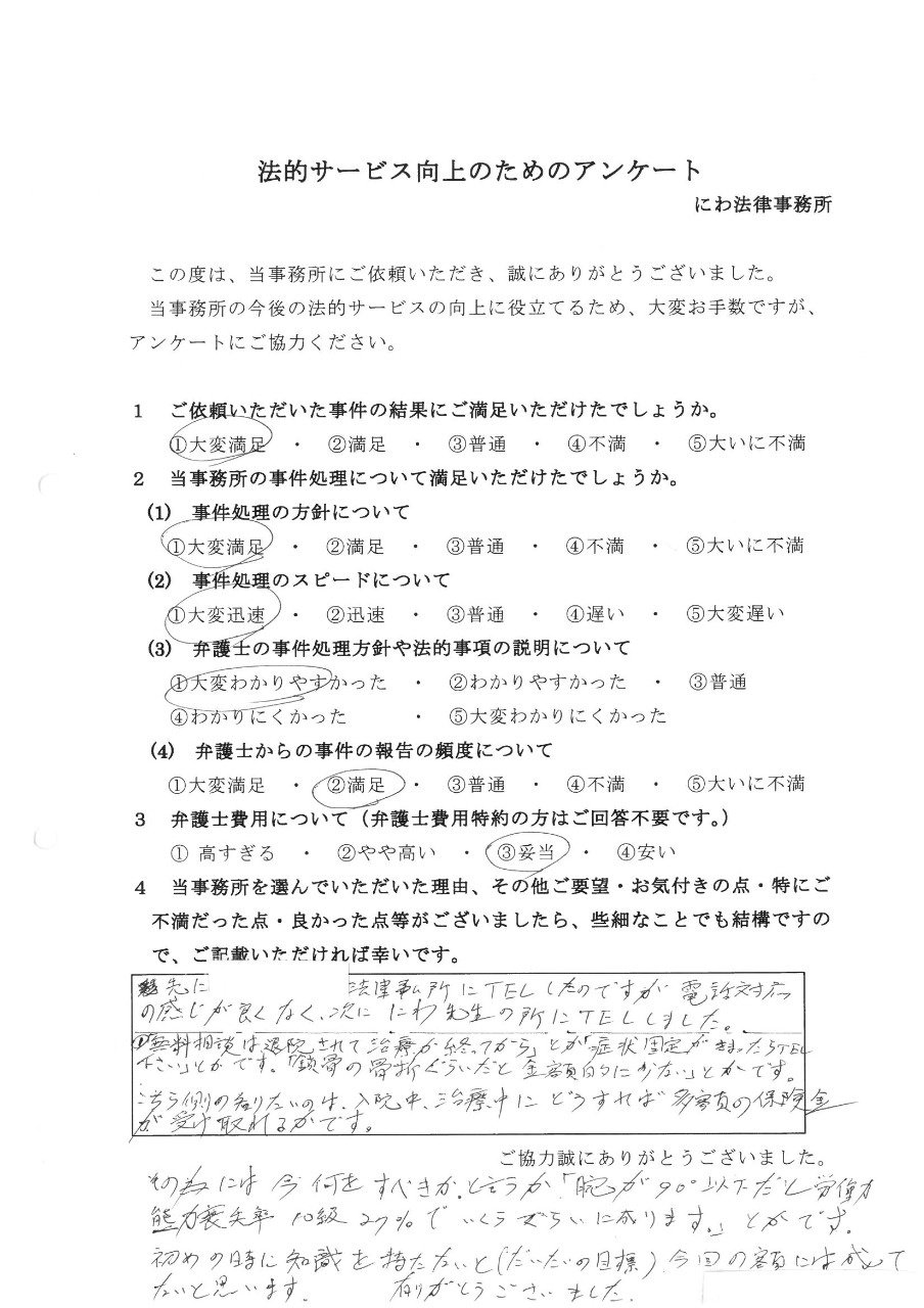 - 先生の人柄に安心感を持て、依頼させて頂きました。