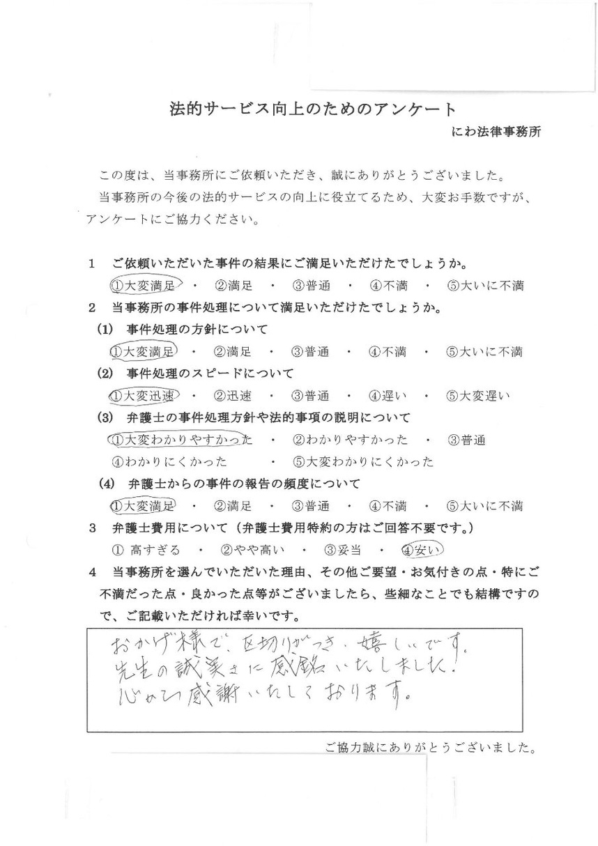 これまでに当事務所へご相談いただいた依頼者様からのご意見やご感想を紹介いたします。