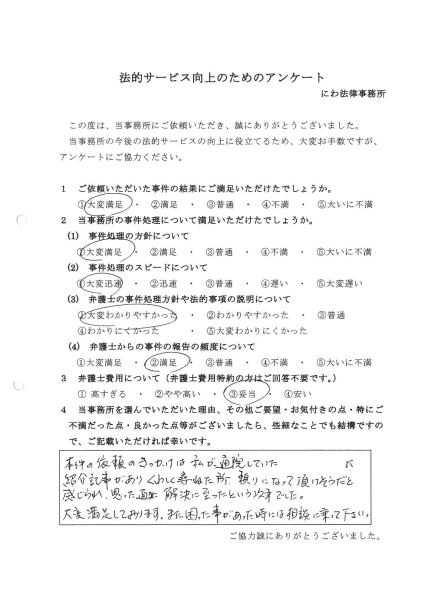 これまでに当事務所へご相談いただいた依頼者様からのご意見やご感想を紹介いたします。