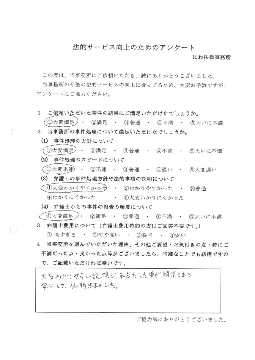 これまでに当事務所へご相談いただいた依頼者様からのご意見やご感想を紹介いたします。