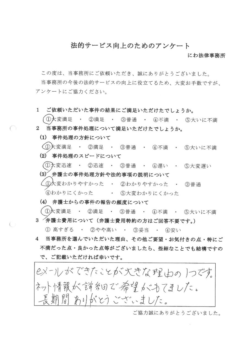 これまでに当事務所へご相談いただいた依頼者様からのご意見やご感想を紹介いたします。