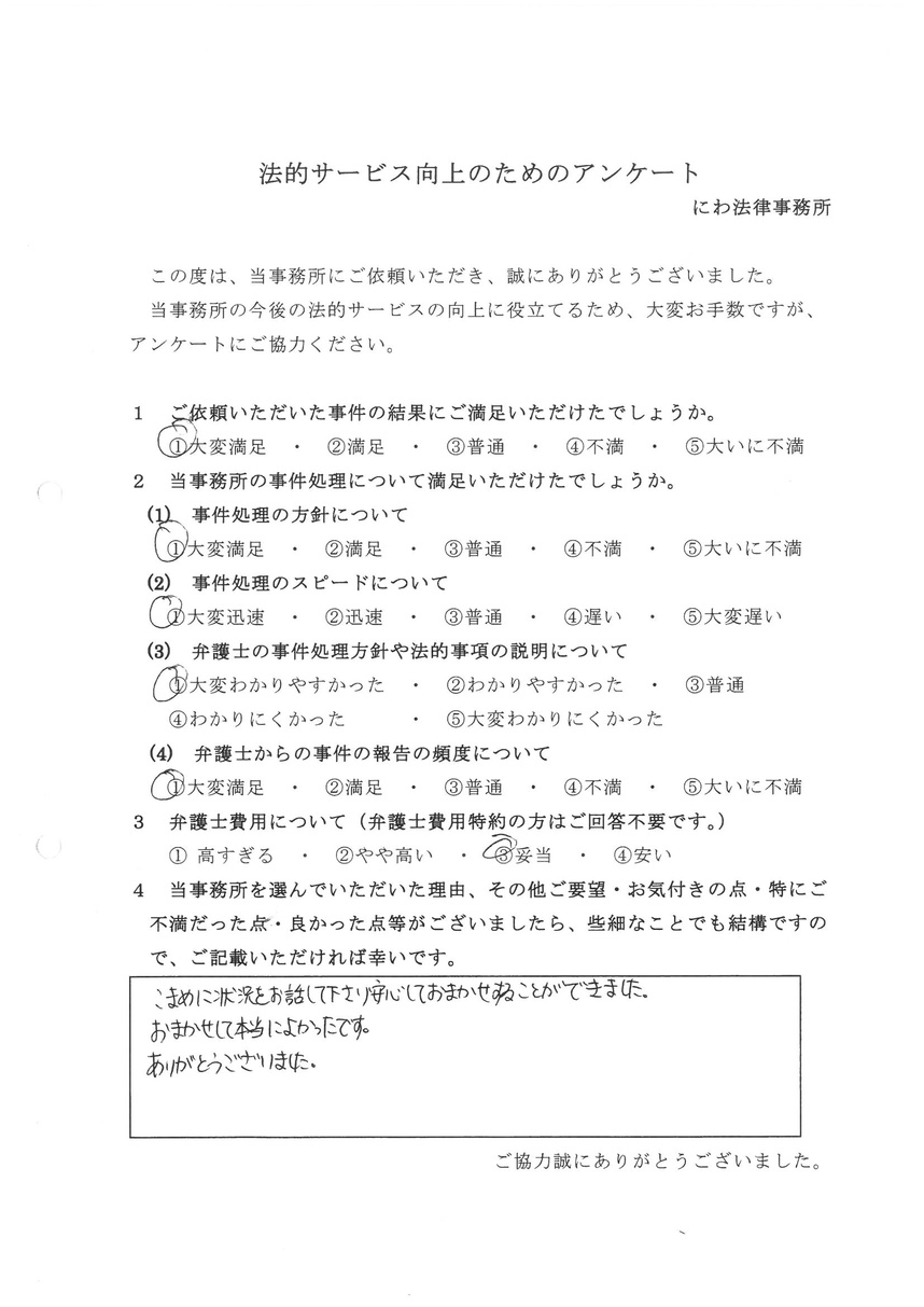 - 「にわ法律事務所」様のおかげです!!