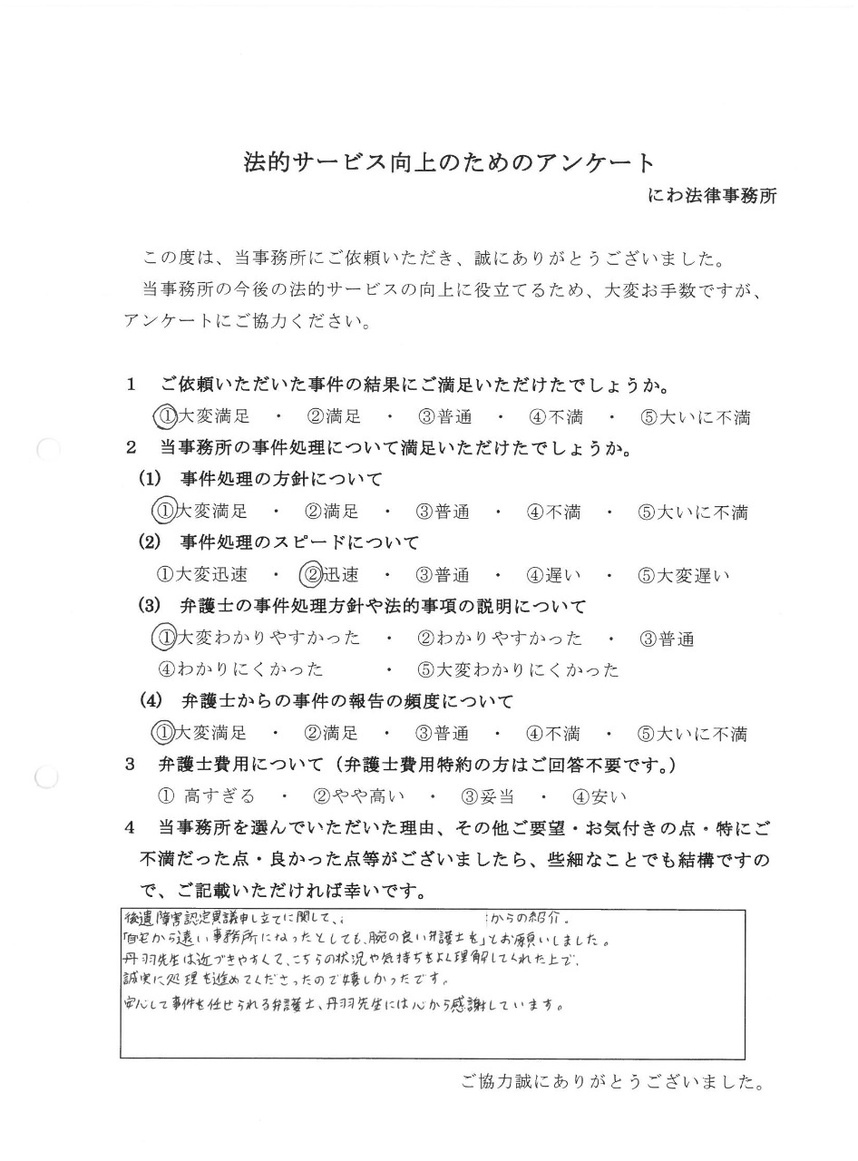 これまでに当事務所へご相談いただいた依頼者様からのご意見やご感想を紹介いたします。