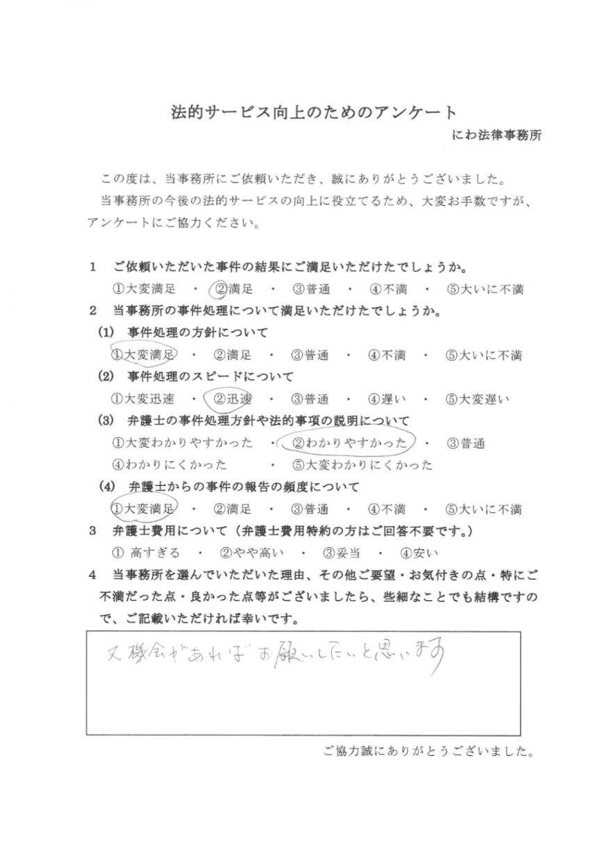 これまでに当事務所へご相談いただいた依頼者様からのご意見やご感想を紹介いたします。