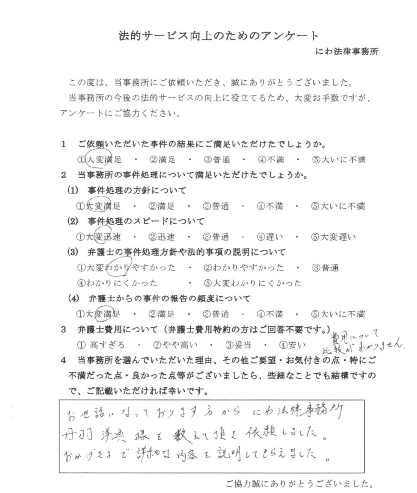 これまでに当事務所へご相談いただいた依頼者様からのご意見やご感想を紹介いたします。