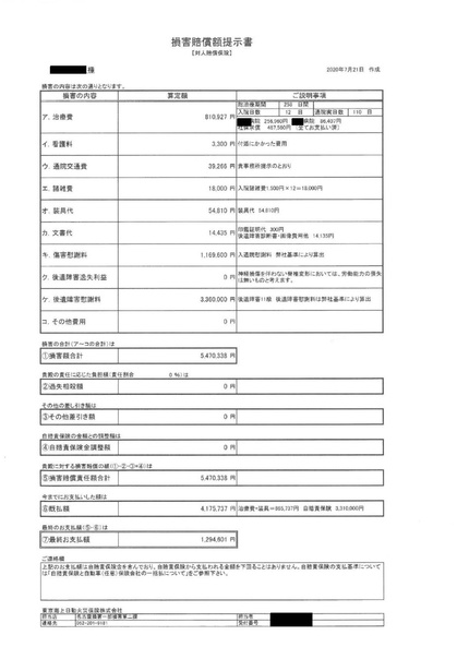上記の計算書のとおり相手方任意保険会社は、11級7号脊柱の圧迫骨折の場合未だに後遺障害逸失利益を全額否定してきます。