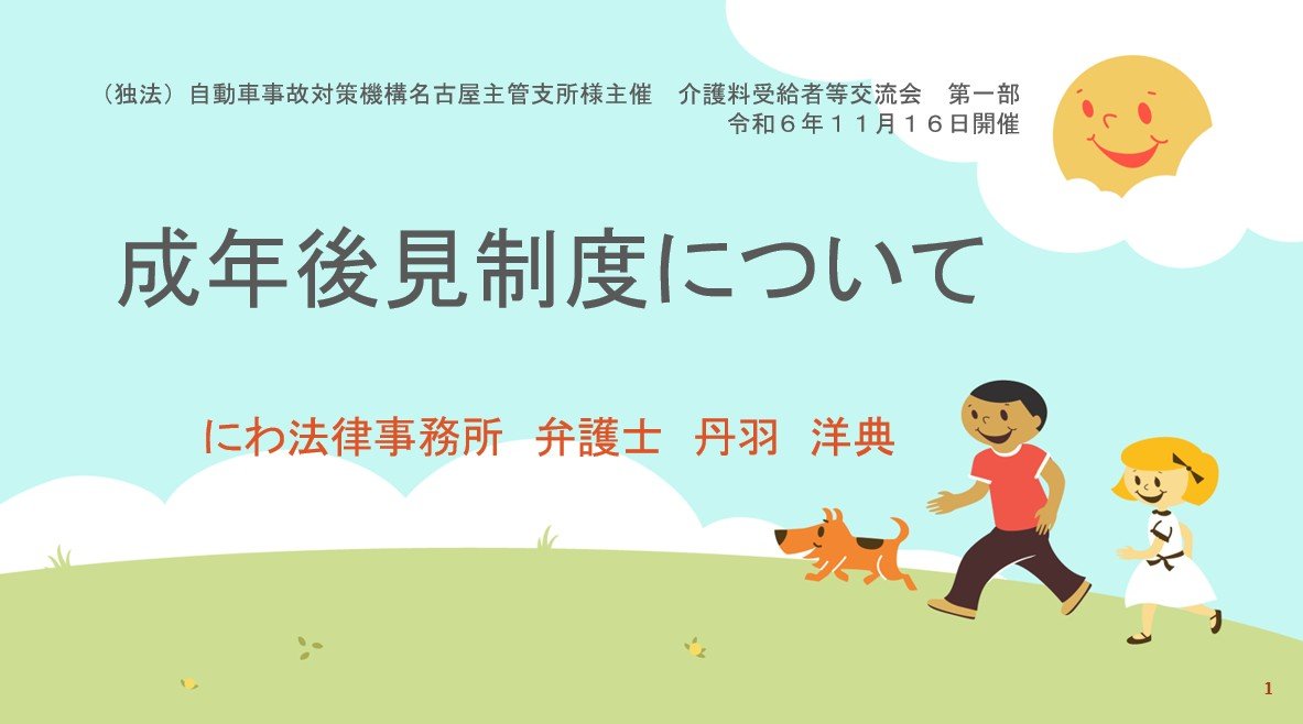 令和6年11月16日 独立行政法人自動車事故対策機構(NASVA)名古屋主管支所様主催「介護料受給者等交流会」講演会「成年後見制度について」