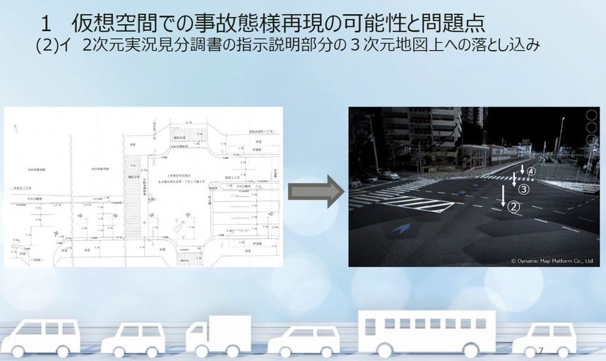 現在、捜査機関を中心に3次元地図を用いた視覚的にわかりやすい証拠の研究・開発が進んでいます。